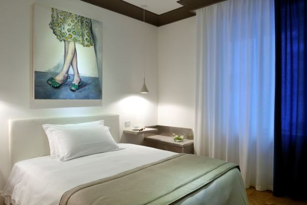 Camera Deluxe: Arredate con finiture in resina e lampade di design e caratterizzate dalle emozionanti tele dell'artista Simona Cavaglieri, le camere deluxe offrono vasti spazi e un ambiente bagno curato fin nei minimi dettagli. Tutte le camere deluxe dispongono di set per thé e caffè, bollitore, una bottiglia di acqua minerale in omaggio, possibilità di terzo letto, accesso internet ad alta velocità gratuito, chiave magnetica, scrivania con sedia, tv LCD con canali satellitari e Sky, telefono diretto, set di cortesia completo di pantofole, aria condizionata, riscaldamento, spegnimento automatico delle luci, set di scrittura, cassaforte elettronica, asciugacapelli.