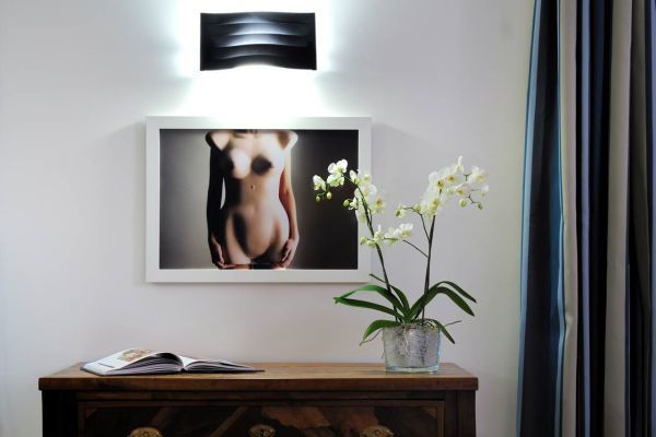 Junior Suite:Le due eleganti junior suite hanno ciascuna un proprio carattere e una propria atmosfera, romantica, contemporanea o intimista, resa unica da opere di arte contemporanea, lampade d'arte e ambienti insoliti e privati, in cui gli ospiti potranno trascorrere un soggiorno d'eccezione. Tutte le junior suite dispongono di macchina Nespresso con selezione di capsule, set per thé e caffè, bollitore, una bottiglia di acqua minerale in omaggio, possibilità di terzo letto, accesso internet ad alta velocità gratuito, chiave magnetica, scrivania con sedia, tv LCD con canali satellitari e Sky, telefono diretto, set di cortesia completo di pantofole, aria condizionata, riscaldamento, spegnimento automatico delle luci, set di scrittura, cassaforte elettronica, asciugacapelli.