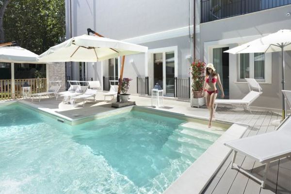 Destinatione: Rivabella - Rimini Categoria Hotel: 4 stelle Posizione: Hotel Rimini Suite si trova a Rivabella di Rimini, a 150 metri dal mare e vicinissimo a numerosi negozi, bar e ristoranti. Servizi Hotel: L’Hotel ha un totale di 31 stanze, reception, bar, sala colazioni, ascensore, piscina esterna. La connessione Wi-Fi è disponibile gratuitamente in tutto l'hotel. Servizi camere: Le camere dispongono di servizi privati, balcone, aria condizionata, cassaforte, box doccia, asciugacapelli, Satt TV, telefono e Wi-fi. Culla sul richiesta. Le camere singole non disponibili Camere multiple se disponibili con letto a castello. Trattamenti: Colazione: - Colazione a buffet Check-in: dalle ore 14:00 Check-out: entro le ore 10:00 Parcheggio: Parcheggio non garantito (in base alla disponibilità in loco) da pagare sul posto. Animali: animali di piccola taglia ammessi con pagamento sul posto, nel rispetto del regolamento dell’Hotel. Tassa di soggiorno: non è inclusa in prezzo. E' da pagare sul posto al momento del check in. EVENTUALI RICHIESTE DEL CLIENTE O PARTICOLARI ESIGENZE NON SONO GARANTITI.