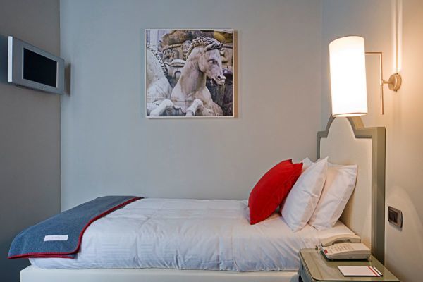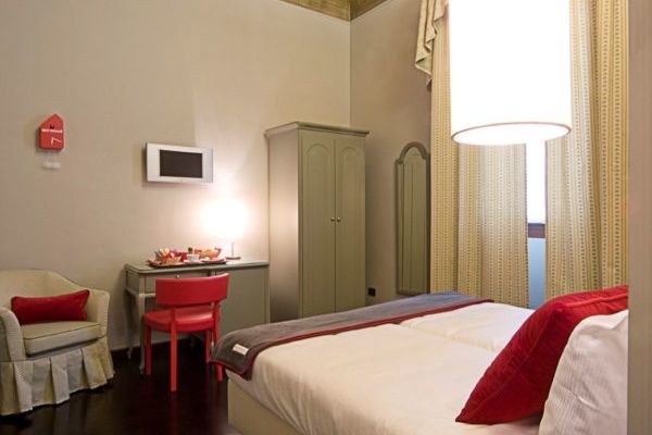 La costruzione che lo ospita è un nobile palazzo rinascimentale con una suggestiva scalinata che conduce ai piani superiori, pareti decorate con gusto e un affascinante cortile interno. Le camere uniscono un design elegante a dettagli originali e sorprendenti, come i curiosi orologi a cucù con vista sulla Basilica di Santa Maria Novella.
