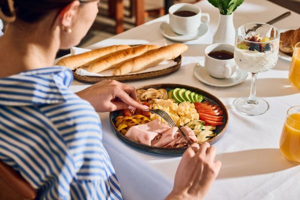 L’hotel offre un servizio di mezza pensione con ricca colazione e cena a buffet. Durante la cena sono incluse bevande gratuite (acqua naturale e frizzante, vari tipi di succhi, vino bianco, vino rosso, birra). All’interno dell’hotel si trova anche un ristorante/pizzeria à la carte con forno a legna, arredato in uno stile mediterraneo caldo e accogliente – ideale per serate rilassanti con ottima pizza e specialità locali.