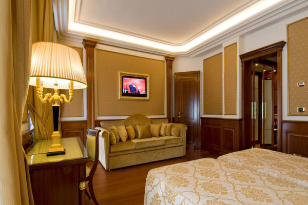 TRIPLA CON DIVANO LETTO: Camera molto luminosa, dotata di divano letto, caratterizzata da interni eleganti e da arredamento curato, offre bagno con doccia o vasca, cassaforte, wi-fi, telefono diretto, minibar, Tv Sat.