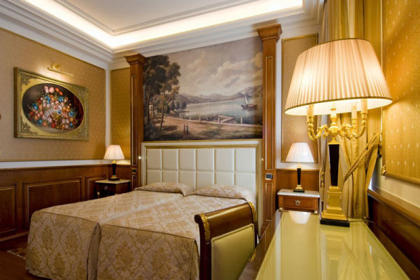 SUITE MAXI VISTA LAGO: La maxi suite dispone di un'ampia camera da letto, di un soggiorno separato con sontuosi arredi e tende a drappeggio, e di un bagno decorato in marmo, con vasca idromassaggio e doccia separata. Alcune offrono un letto a baldacchino. La maxi suite regala una splendida vista sul Lago Maggiore e sul Golfo Borromeo. Dispone di bagno con doccia o vasca, cassaforte, wi-fi, telefono diretto, minibar, Tv Sat.