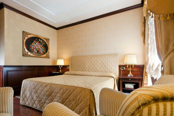 DOPPIA SUPERIOR LATO MONTE: Camera luminosa e posta ai piani alti, dispone di interni eleganti e più riccamente decorati. Il balcone si affaccia sulle montagne con vista sulle cave di granito rosa di Baveno. Dispone di bagno con doccia o vasca, cassaforte, wi-fi, telefono diretto, minibar, Tv Sat.
