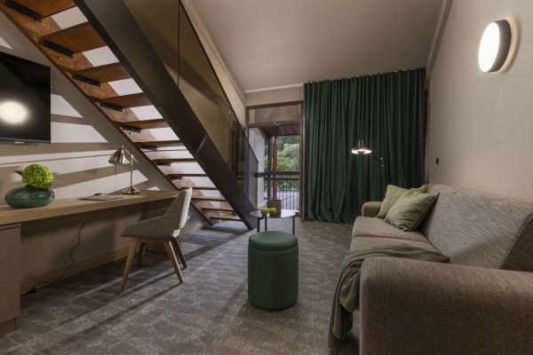 La Suite Jezerčica è un alloggio esclusivo dotato di comodi letti da 180x200 cm, separabili in due letti singoli da 90x200 cm, e di un comodo divano letto. Può ospitare fino a 2 adulti e 2 bambini. Con una superficie di 35-40 mq, queste suite offrono ampio spazio per un soggiorno confortevole.
