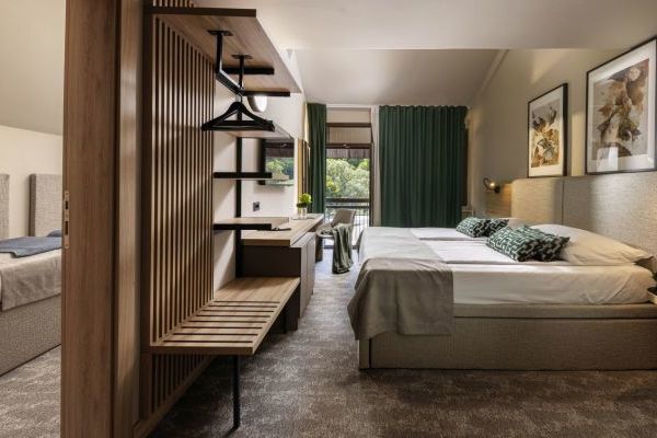 La camera standard delle Terme Jezerčica offre una sistemazione confortevole per un massimo di 2 adulti. Tutti i letti standard della camera sono due letti singoli da 90x200 cm, perfetti per un soggiorno rilassante.