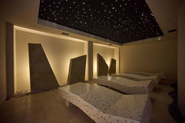 L’atrio, abbellito con tonalità vivaci e colorate, è perfetto per un drink al pomeriggio, prima di camminare al tramonto verso il vicino faro, costruito da un principe austriaco come gesto d’amore per la sua amante croata.
