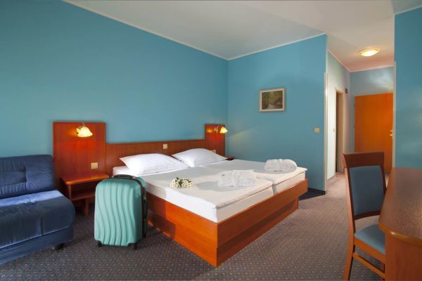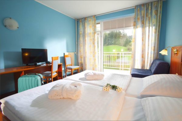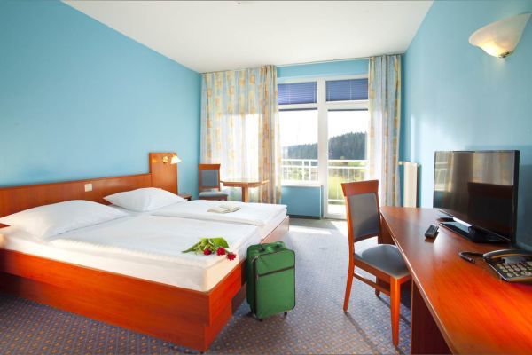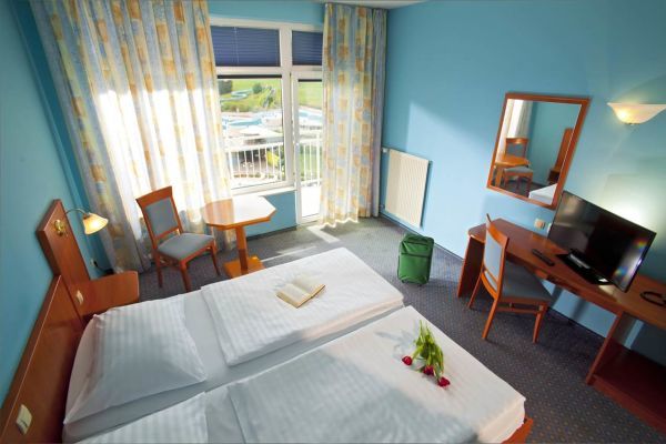 Le spaziose e splendidamente decorate e arredate camere nel cuore della natura vi permetteranno di trascorrere un piacevole soggiorno con una splendida vista sul parco e sulle piscine. Come parte dell'alloggio vi offriamo il pernottamento con colazione a buffet e/o cena. L'accesso illimitato alle piscine e alle saune dell'hotel è incluso nel prezzo dell'alloggio.