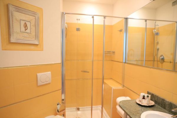 DOPPIA CLASSIC : Camera per due persone con arredi curati nei minimi dettagli, adatta ad un soggiorno rilassante, bagno con doccia,telefono diretto, piccolo frigo, Tv Sat, cassaforte, asciugacapelli, aria condizionata, wi-fi. Balcone oppure accesso diretto al giardino comune.