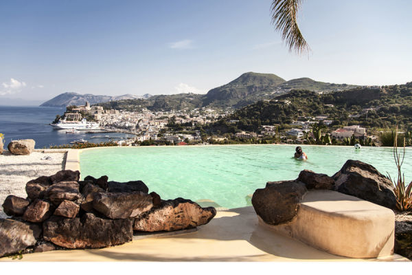 In località Serra, immersa in un parco ricco di vegetazione mediterranea, con piante di agrumi, mandorli ed olivi, in stile eoliano, dalla gradevole combinazione di materiali ed arredi locali e stile moderno. La posizione collinare, con una vista che si estende fino alla pittoresca Baia di Marina Lunga ed al Castello di Lipari, rende la Villa un’oasi di pace e serenità e meta ideale per chi desidera staccare la spina e trascorrere un soggiorno romantico immerso nella natura.