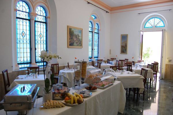 - Prima colazione con buffet rinforzato, visibile dai clienti ma con servizio al tavolo.