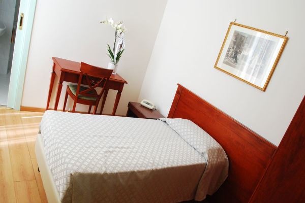 SINGOLA: Camera per una persona di circa 10 mq, climatizzata, cona pavimenti in parquet e dotata di ogni tipo di comfort.
