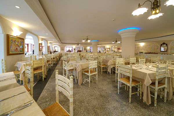 RISTORANTE: due sale comunicanti al coperto, con tavoli assegnati per tutta la durata del soggiorno. Prima colazione, pranzo e cena saranno serviti dal nostro personale attraverso i buffet. Bevande in Caraffa incluse ai pasti (1/2 acqua esclusivamente naturale microfiltrata solamente naturale e 1/4 di vino in caraffa per gli adulti, oltre tale quantità sono a pagamento; non è consentito l'asporto). In alcuni periodi la Direzione si riserva la facoltà di variare la modalità di servizio. Settimanalmente sono previste due serate a tema (nelle serate a tema è sempre garantita una portata vegetariana o una soluzione alternativa). Prima colazione: offre un’ampia selezione di alimenti dolci e salati, caffetteria non espressa (da dispenser automatici con caffè in grani). Pranzo e cena: ogni giorno ricchi e sfiziosi buffet con piatti regionali e internazionali, ampia scelta di antipasti, primi, secondi, contorni, frutta e dolci. Al ristorante non è possibile ordinare piatti al di fuori del menù fisso e giornaliero previsto per il trattamento di pensione completa.