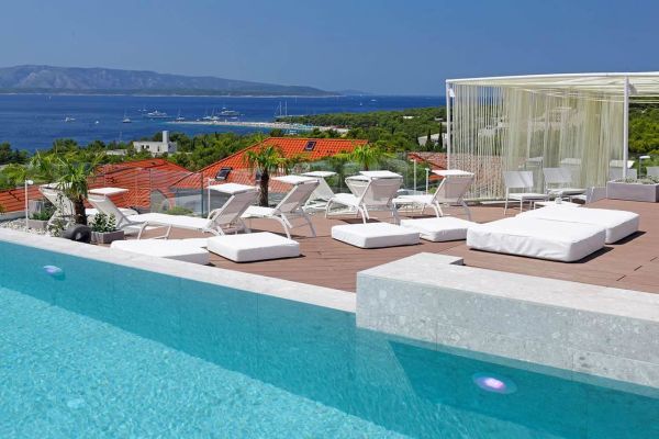 La vista spettacolare di Bol, le meravigliose sfumature di blu, la brezza rinfrescante e il profumo di sale nell’aria. Ti offriamo tutti gli ingredienti per una spensierata giornata estiva al mare. Immergiti nella vasca idromassaggio o nella piscina, ordina il tuo cocktail preferito e trascorri qui il resto della giornata. Ammirare i tramonti dalla nostra terrazza è un’esperienza unica che non devi farti scappare.