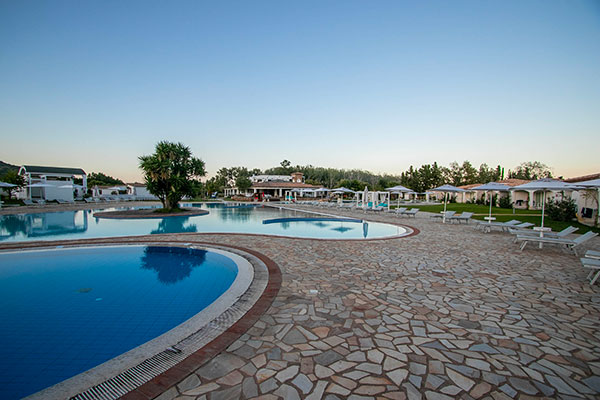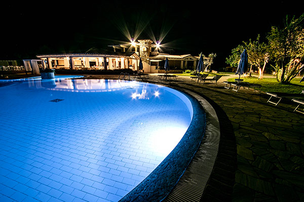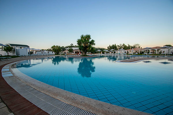 A disposizione degli ospiti, la Piscina Senior, con una superficie totale di 360 mq e dotata di idromassaggio, una piastra effervescente per la idroterapia (massaggio di piedi e gambe), e una cascata per divertirsi con l’acqua. La profondità della piscina e l’ampiezza consentono agevoli nuotate, facilità di movimento e relax totale. A bordo piscina sono anche disponibili lettini e ombrelloni; la Piscina Junior è invece studiata per il divertimento dei bambini, uno spazio a loro dedicato con giochi in acqua in completa sicurezza. Più ampia della Senior, con i suoi 670 mq e l’isola verde collocata al centro. La vasca è poco profonda e sicura. Il resort propone massaggi.
