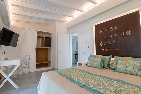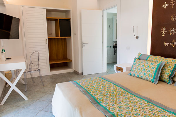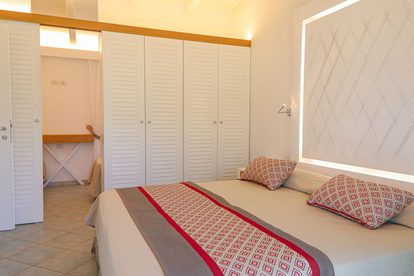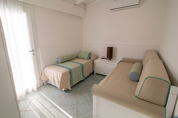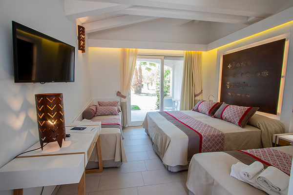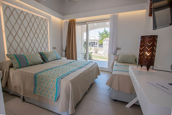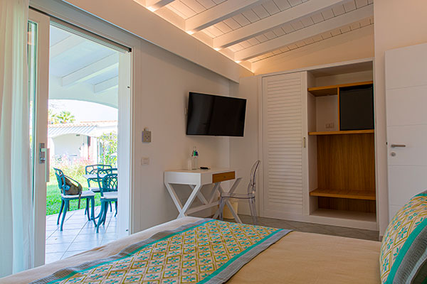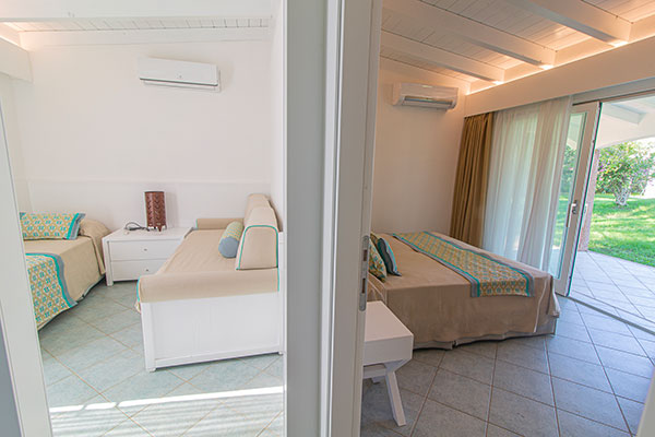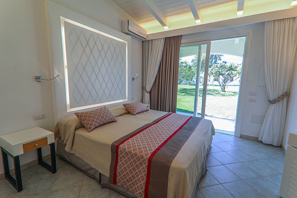 il Resort offre un’ampia scelta di camere e di tipologie abitative. Composto da 53 villini indipendenti e da 52 camere su villette a schiera collocati nella zona centrale del complesso, a soli 400 metri dalla spiaggia, differenziati per caratteristiche e capacità ricettiva. Sono dotati di aria condizionata con regolazione individuale, telefono, TV, mini-frigo, cassaforte, bagno con doccia e asciugacapelli. Si dividono in: Camera Family (in villino indipendente): ideale per la vacanza con la famiglia al seguito, organizzata in una camera dotata di letto matrimoniale più vano notte composto da 2 letti singoli piani per un massimo di 4 persone (max + 1 culla). All’esterno si può godere di un ampio e luminoso patio con salotto che si affaccia sul giardino. Camera Family Superior (in villino indipendente): sono composti da una camera spaziosa e confortevole con letto matrimoniale e da una seconda camera in grado di ospitare fino a tre posti letto (un letto singolo e un letto a castello), per un totale massimo di 5 persone (max + 1 culla). All’esterno si può godere di un ampio e luminoso patio con salotto che si affaccia sul giardino. Camere Comfort: disposte su villetta a schiera, dislocate nella zona più vicina alla hall e ai servizi principali, la maggior parte si trova a piano terra, e tutte dispongono di patio attrezzato con tavolo e sedie. Possono ospitare un massimo di 3 persone (max + 1 culla).