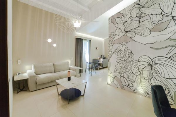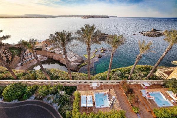 55, 23 Suites, 2 Grand Suite, 5 Ville e 3 Grand Ville. Tutte le camere sono distribuite in riservati Cottage, circondati dalla vegetazione mediterranea e mettono a disposizione dell’ospite comfort e riservatezza. Si dividono in: Classic, di ca. 30 mq, terrazzo con vista giardino, interna o piscina; Superior: ca. 30 mq, terrazzo vista giardino, interna o piscina; Ortigia: ca. 25 mq, terrazzo con vista panoramica; Deluxe Ortigia: ca. 33 mq, terrazzo con vista mare panoramica; Family Suite: da 45 a 65 mq ca., con piccolo giardino privato; Ortigia Family Suite: ca. 55 mq, terrazzo con vista mare panoramica; Panoramic Suite: ca. 60 mq, zona living e terrazzo a strapiombo sul mare con vista panoramica; Jacuzzi Suite: da 45 a 50 mq ca., ampio bagno e area relax, giardino privato e vasca jacuzzi; Olea Suite: 105 mq, su due livelli: piano terra con area living e bagno, primo piano con salone, camera da letto e bagno con vasca, giardino privato con vasca Jacuzzi; Pool Suite: da 50 a 70 mq, ampia zona living e relax, giardino con piscina privata; Gran Suite Salicornia: 70 mq ca., ampio living con bagno di cortesia, camera da letto con bagno padronale, giardino con piscina privata e area relax; Gran Suite Pistacia: 70 mq, ampio salone, 2 camere da letto, giardino con piscina privata e area relax.