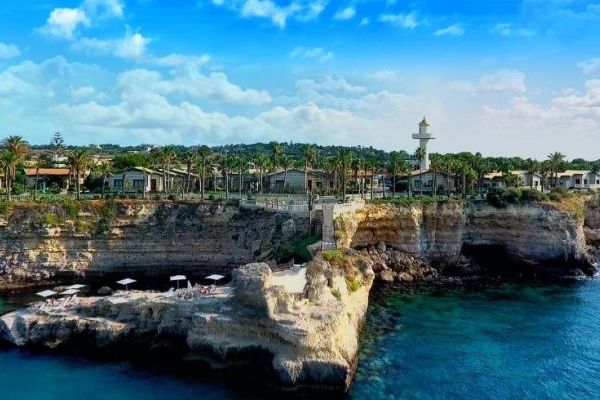 colazione a buffet; Ristorante Neos: grande sala interna (fino a 250 posti) e sala esterna (Terrazza Latomie) a picco sul mare. Pool Bar a bordo piscina. Terrazza Titanic, per serate a tema o eventi particolari. Lobby Bar nella hall. 7 sale meeting (Fidia, Archimede, Pitagora, Seneca, Aristotele, Platone e Epicuro) eleganti e funzionali, tutte insonorizzate, impianto audio e video, connessione Wi-Fi gratuita. Accesso in piscina e alle spiagge, connessione internet, parcheggio gratuito, sala fitness.