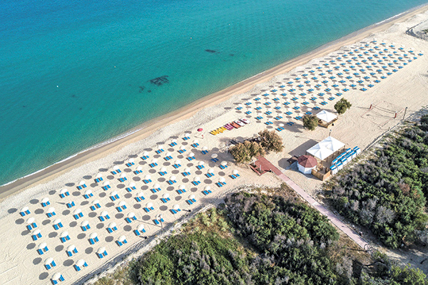 La Spiaggia: L’accesso alla spiaggia e al suo mare cristallino distano dal villaggio meno di 100 mt e vi si accede percorrendo un passaggio pedonale attrezzato, attraverso una lussureggiante e fresca pineta di macchia mediterranea con alti pini. L’ampia e lunghissima spiaggia privata di sabbia finissima a diposizione degli ospiti è attrezzata con ombrelloni, lettini, sdraio, docce. L’accesso diretto è fruibile anche per i disabili.