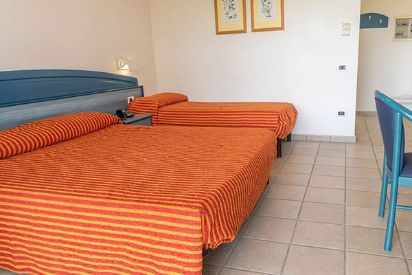Le 300 unità abitative, in stile mediterraneo con colori a tinta tenue e con sfumature cromatiche che vanno dall’azzurro al blu mare, rievocano i colori del cielo e del mare e sono suddivise in varie tipologie tra singole, doppie, triple, triple plus, e comode suite per 4/5 posti (2 camere e 1 bagno). Le camere sono tutte dotate di servizi con doccia, aria condizionata, TV satellitare, phon, cassaforte, telefono, frigobar, patio o balcone. Le camere triple sono composte da letto matrimoniale e letto aggiunto. Le camere triple plus invece con eventuale 4° letto aggiunto. Inoltre, per i nuclei familiari o adulti di 4/5 persone, sono disponibili ampie e confortevoli Suite con patio o terrazza e sono composte da una camera con letto matrimoniale, un soggiorno con 2 divani letto singoli o 1 divano matrimoniale più un’eventuale 5° letto aggiunto. Disponibili camere per ospiti disabili.