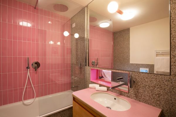 La camera Comfort COZY è la soluzione ideale per i nostri clienti piu attenti al budget. Offre tutti i comfort necessari ad un comodo soggiorno in un ambiente decorato dai vivaci pannelli dell’artista valdostana Chicco Margaroli. I colori e le forme delle sue creazioni si mescolano al legno di pero dei mobili e ai preziosi tessuti in velluto della camera. I due letti singoli di 200 cm di lunghezza e 90 cm di larghezza possono essere uniti su richiesta per creare un comodo letto matrimoniale (200 cm X 180 cm).