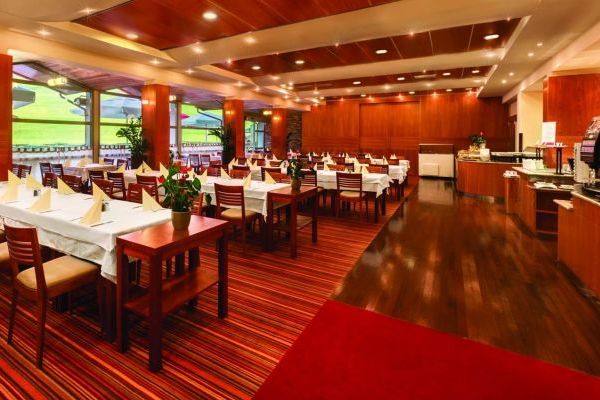 Le 118 camere a quattro stelle offrono tutto il necessario per una vacanza rilassante: Wi-Fi, box doccia, WC, TV via cavo e radio, minibar e telefono con linea diretta. Potrete vivere un'esperienza unica con la vista pittoresca di Kranjska Gora mentre fate un tuffo nel parco acquatico con finestre panoramiche proprio accanto alla pista da sci.
