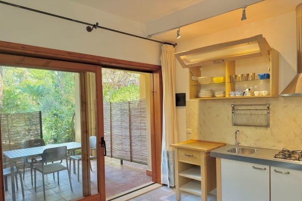 Il residence dispone di appartamenti al piano terra, disposti secondo una forma semicircolare e racchiudenti una piacevole piazzetta piena di verde lussureggiante a loro riservata: ogni abitazione è dotata di un patio attrezzato per poter pranzare all’aperto e rilassarsi dopo una giornata di mare.
