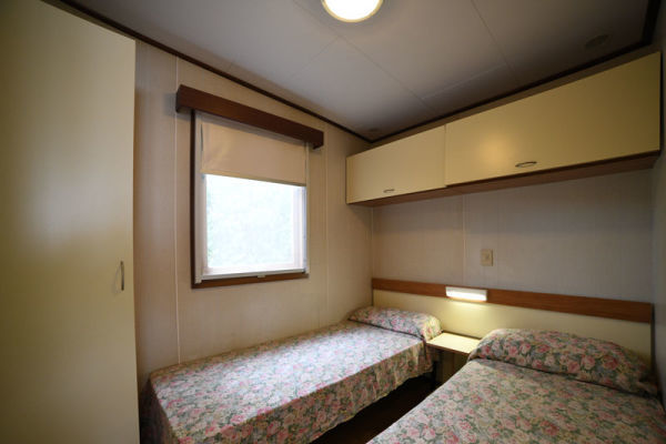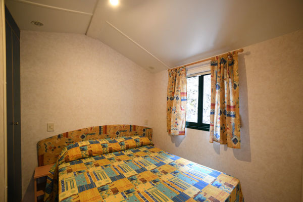 MOBILHOME C 2/3 PERSONE: Chalet-mobilhome per 2 adulti e un bambino di massimo 5 anni, di circa 34 mq. Composto da soggiorno con angolo cottura dotato di fornelli a gas con 4 fuochi e frigorifero con congelatore, camera matrimoniale, camera con un letto a castello e un letto singolo o 3 singoli. Due bagni (1 con doccia e WC e 1 solo con WC), spazio esterno attrezzato. Aria condizionata e riscaldamento. Spazio esterno attrezzato con sedie o panche più tavolo. Posteggio riservato di fianco alla struttura.
