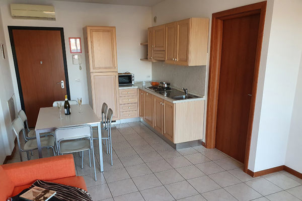 BILO BASIC – 50 mq , balcone con tavolo e sedie, aria condizionata e riscaldamento, cucina con tavolo e sedie, utensili da cucina, angolo cottura a 4 piastre elettriche, frigorifero e freezer, forno a microonde e lavastoviglie. In più zona giorno con divano letto, una camera matrimoniale, 1 armadio, 1 bagno con doccia e asciugacapelli.Servizi dedicati ai bambini: seggiolone, culla da campeggio e spondine.
