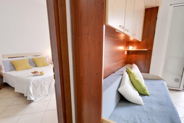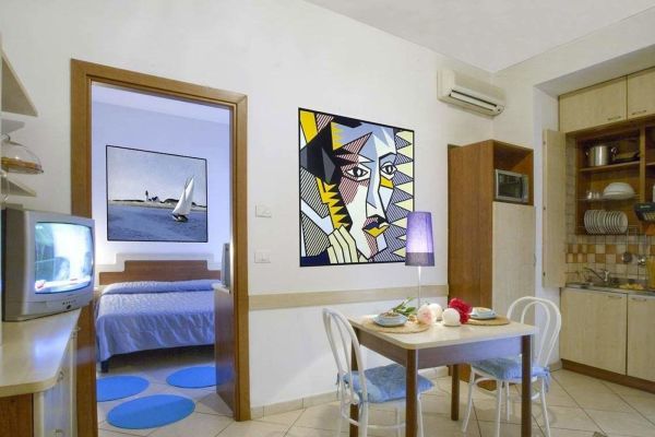 Arredati in modo confortevole, tutti gli appartaenti (monolocale 2 posti e bilocale 4 posti) sono dotati di angolo cottura con frigorifero e forno a microonde, TV Sat, wi-fi, aria condizionata autonoma, cassaforte. Monolocale 2 posti letto: soggiorno con angolo cottura, due posti letto. Bilocale 4 posti letto: soggiorno con angolo cottura e divano letto doppio, camera matrimoniale.