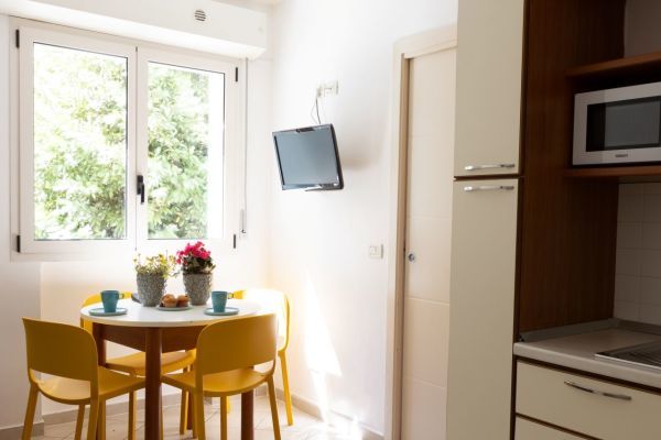 Gli appartamenti offrono un’atmosfera rilassante e accogliente, ideale per vacanze pratiche e in totale autonomia, senza rinunciare a nessun comfort. Disponibili in formule monolocale o bilocale, garantiscono spazi funzionali e confortevoli, perfetti sia per coppie che per famiglie che desiderano godersi Rimini in libertà.