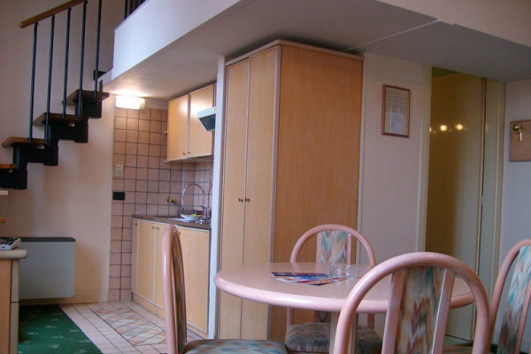 MONOLOCALE CON SOPPALCO 4 PERSONE: Monolocale di circa 30 mq, con soppalco, adatto ad ospitare 4 persone, arredato in stile semplice ma funzionale, composto da soggiorno con doppio divano letto a scomparsa, area notte con due letti divisa dal soggiorno da un armadio.