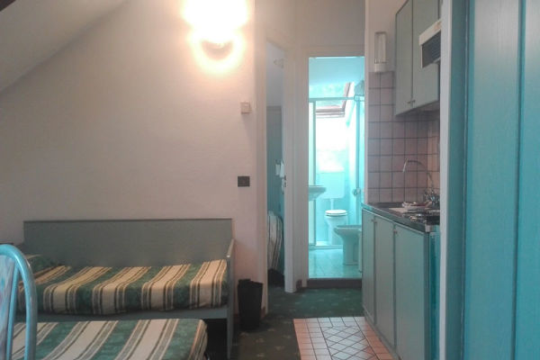BILOCALE 3 PERSONE: Bilocale di circa 20/25 mq, adatto ad ospitare 3 persone, arredato in stile semplice ma funzionale, composto da camera doppia e soggiorno con divano letto.