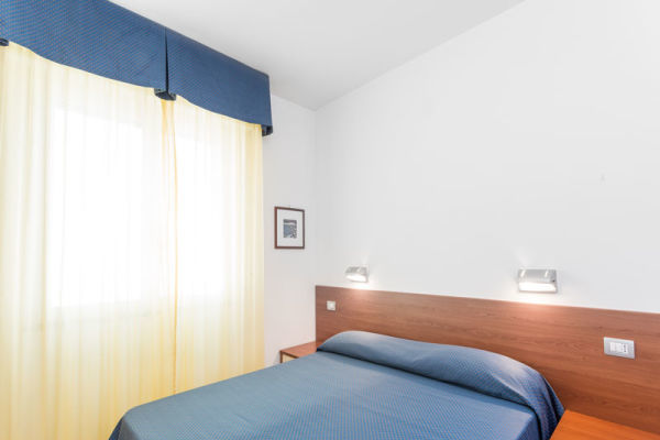BILOCALE 4 CLASSIC: Bilocale per 4 persone, di circa 30 mq, composto da camera doppia e soggiorno con doppio divano letto, cucininaa, servizi con vasca o doccia.