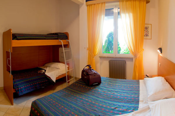 TRILOCALE COMFORT 8 PERSONE: Trilocale per 8 persone, di circa 60 mq, composto da camera matrimoniale e letto a castello, camera con 2 letti, soggiorno con divano letto doppio, angolo cottura. Balcone attrezzato (1 ombrellone e 1 sdraio) con vista mare. Questa tipologia di camera inoltre è dotata di lavastoviglie, aria condizionata e doppi servizi.