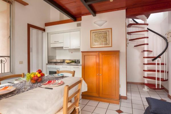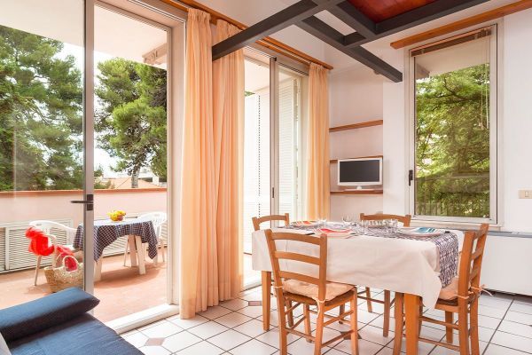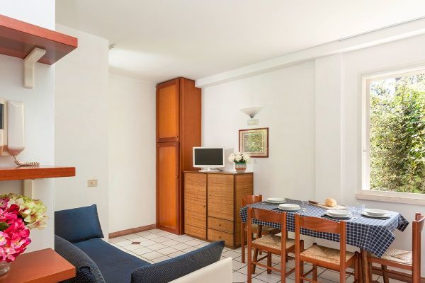 Smart A "Bilocale Duplex": camera matrimoniale soppalcata con accesso tramite scala a chiocciola, salotto con divano letto e angolo cottura, bagno con doccia e balcone.Smart C "Bilocale": camera matrimoniale, salotto con divano letto ed angolo cottura, bagno con box doccia, balcone oppure cortile.Confort B "Trilocale": camera matrimoniale, camera a due letti (talvolta con letto a castello), salotto con divano letto, angolo cottura, bagno con doccia, balcone o cortile.