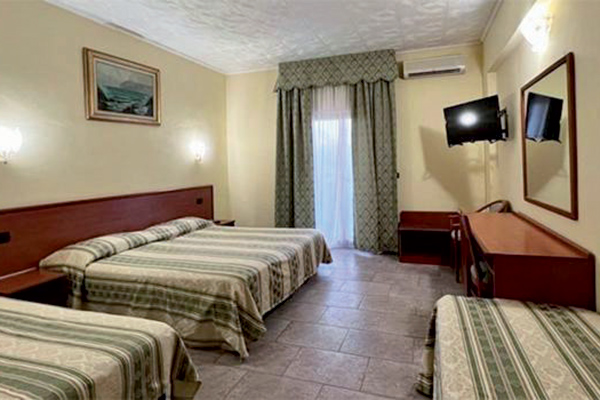 Completamente ristrutturate e spaziose, possono ospitare fino a 4 posti letto, tutte ben arredate sono fornite di aria condizionata, tv color, telefono, frigobar, e ampi terrazzini. L’hotel dispone di camere per diversamente abili. Sarà incluso il servizio giornaliero di riassetto e pulizia camere, con cambio della biancheria da bagno e da letto.