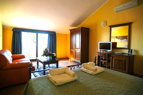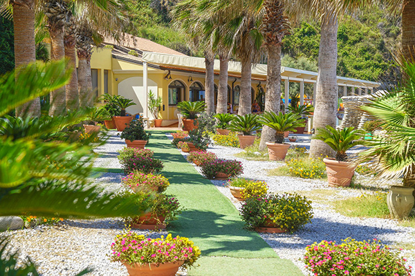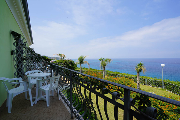 Le 75 camere SMERALDO, poste in alto, si trovano nelle nuove dependance costruite a picco sul mare con un dislivello di 30 mt, a circa 250 -350 mt dalla spiaggia. Le dependance dallo stile coloniale, si articolano in modo da consentire la massima vista sul mare, ma non tutte le camere godono della vista mare e sono arricchite da Palme e da Buganvillee, hanno un patio comune a piano terra e patio comune e balconi privati al primo piano, dove è possibile godere di un completo relax, dominando l’insenatura, con vista sull’ Isola di Stromboli. Servizi camere smeraldo: aria condizionata autonoma, tv, telefono, phon, minibar (a pagamento), cassetta di sicurezza. All’ altezza delle dependance, lato monte, vi è una linea ferroviaria secondaria, litoranea. Tra le due dependance è situata la PISCINA per bambini e adulti con zona idromassaggio. La piscina gode di uno swimming-bar (aperto dalle 16 alle 19).