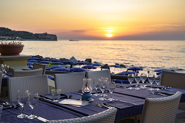 Il ristorante offre piatti sempre freschi della tradizione mediterranea, con servizio al tavolo per garantire il massimo relax. Settimanalmente è offerta la cena per assaporare la cucina tradizionale calabrese e la cena di gala a base di pesce. Servizio ai tavoli assegnati, dove si potranno consumare la cena (servita) e la colazione (a buffet) nel ristorante posto nella terrazza sul mare (situazione climatica permettendo), mentre la consumazione del pranzo (servito) è prevista nella sala interna. (le bevande sono escluse a pagamento).