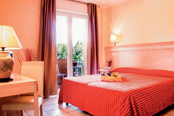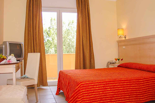 Dispone di 146 camere (di cui 3 comunicanti con occupazione minima di 4 persone), tutte dotate di servizi privati con doccia, aria condizionata, telefono con linea diretta, TV satellitare con pacchetto base, frigobar (servizio rifornimento a richiesta), asciugacapelli, cassetta di sicurezza. Tutte hanno un balconcino privato ed attrezzato con tavolo e sedie, che affaccia lato piscina o lato collina. Le camere quadruple hanno letto a castello oppure lettino e pouf (bambini fino ai 10 anni). Le camere quintuple hanno letto a castello + pouf (bambini fino ai 10 anni). Le camere comunicanti possono essere due camere doppie o triple, ognuna con proprio ingresso e proprio bagno. Riassetto camera e cambio biancheria da bagno giornaliero, cambio biancheria da letto infrasettimanale.