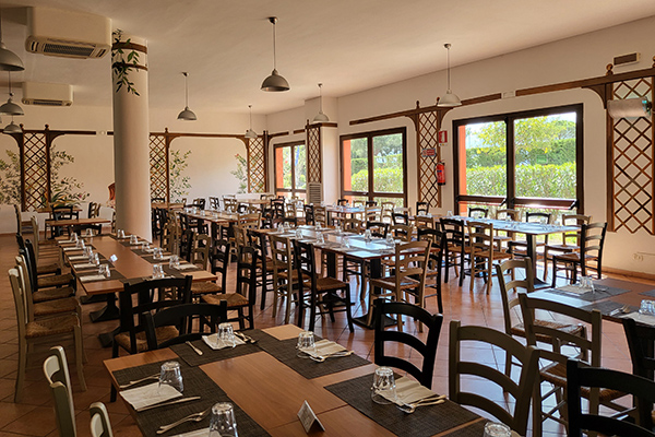Grande ristorante che si sviluppa sia all’interno che con veranda con vista sulla piscina olimpionica, totalmente climatizzato. Colazione, pranzo e cena con servizio a buffet. Vino ed acqua in dispenser a volontà ai pasti insieme a cola, aranciata, gassosa e birra alla spina. Vengono proposti piatti della cucina lucana con una cena tipica a settimana e tipici mediterranei con antipasti, grigliate di carne e pesce grazie ad uno spazio esterno adibito alla griglia, buffet di verdure e dolci a cena. Celiaci ed intolleranze/allergie alimentari: non possiamo garantire l'assenza di contaminazione non avendo una cucina separata; forniamo una linea di prodotti base per colazione, pranzo e cena; far riferimento sempre al maitre in sala per i pasti; possibilità di pasti pre-confezionati.