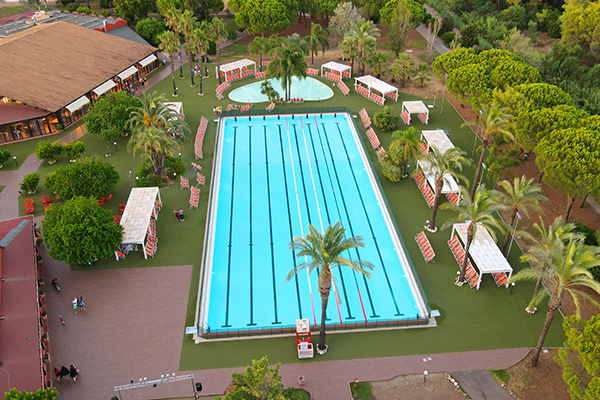Utilizzo piscina olimpionica per adulti e 2 piscine per bambini (cuffia obbligatoria); nei week end di giugno piscina olimpionica non disponibile per tornei di nuoto. Centro benessere presso l'adiacente Hotel Portogreco (a pagamento).