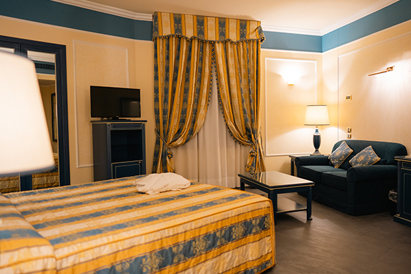 Le camere sono dotate di servizi privati, asciugacapelli, aria condizionata (gratuita), cassaforte (gratuita), minibar (a pagamento), Tv e Wi-Fi (gratuito). Le camere doppie uso singolo edificio Castello e le camere doppie edificio Castello sono di 14 mq, mentre le Camere triple edificio Castello sono di 20 mq.