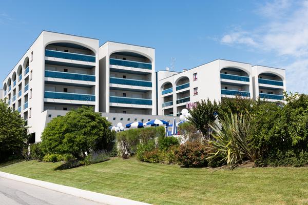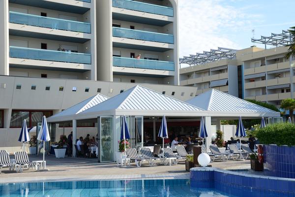 Situato direttamente sulla spiaggia, a pochi passi dalle Terme di Bibione, il complesso comprende 120 alloggi distribuiti in tre edifici di sei piani.