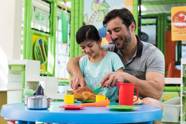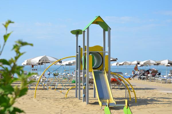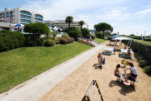 Un'area giochi interna di 400 m² per bambini da 0 a 10 anni, tavoli da ping pong e biliardino e una spiaggia privata recintata e riparata con giochi all'aperto.