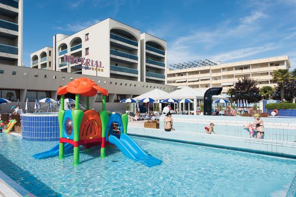 L'Aparthotel Imperial gode di una posizione centrale sulla spiaggia di Bibione e offre spaziosi appartamenti per una vacanza al mare in famiglia.