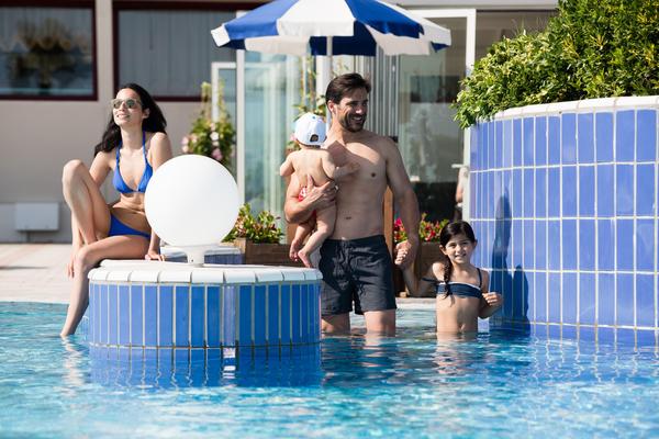Le tre piscine esterne con idromassaggio e getti d'acqua sono un vero paradiso per grandi e piccini.