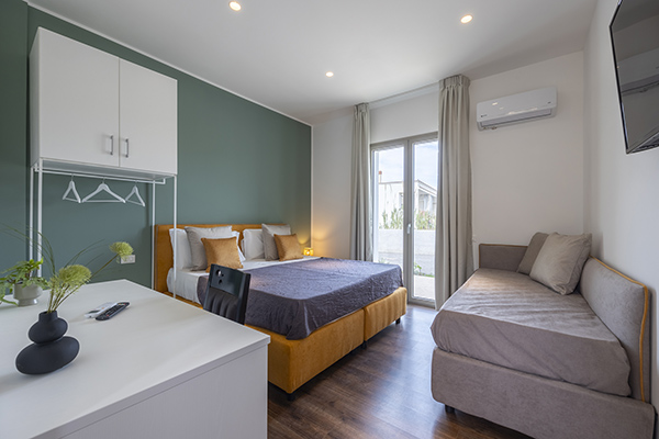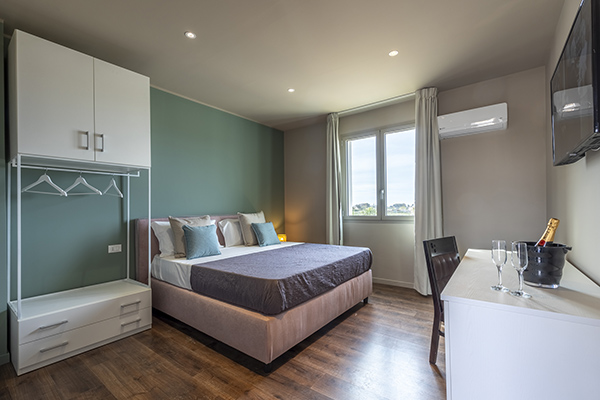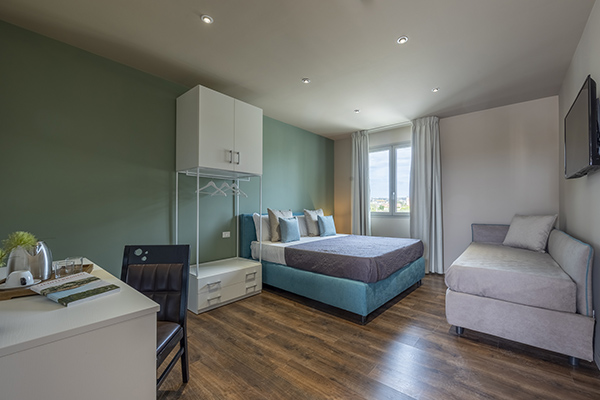 Le camere, di tipologia Deluxe e di 22 mq, dispongono di servizi privati, aria condizionata, cassaforte, minibar (a pagamento), bollitore e Tv.