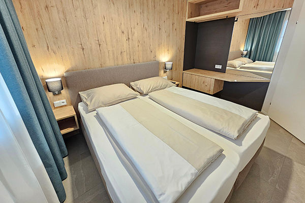 Numero di letti: Letto matrimoniale 2x, Divano letto per 2 persone 1x, Letto con le sponde possibile per una persona in più: Sì