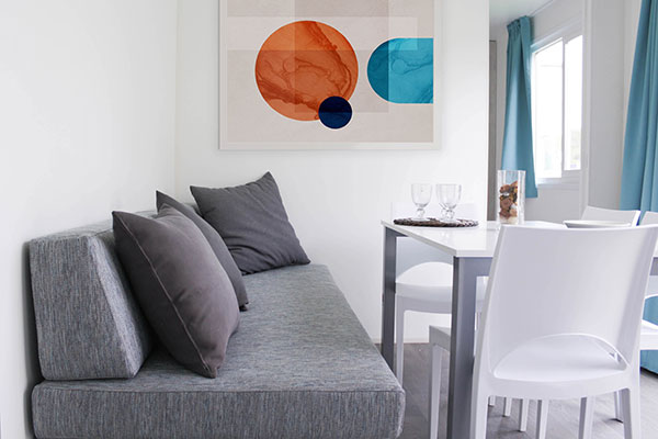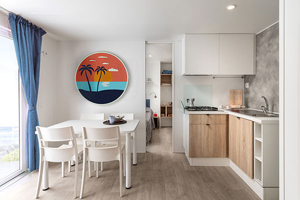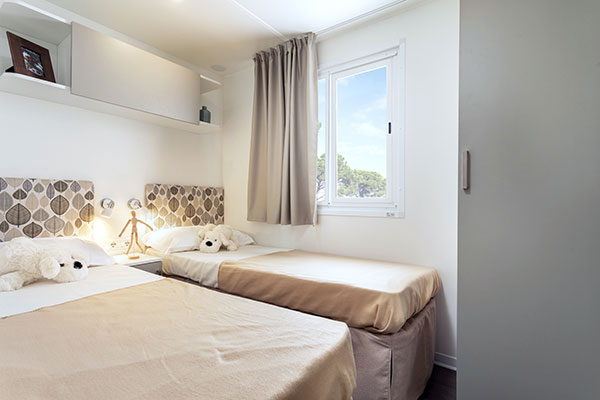 Le sistemazioni dispongono di servizi privati, aria condizionata (gratuita), angolo cottura, frigorifero e patio. I Bungalow sono dotati di una camera matrimoniale; le Tende Lodge e le Case Mobili New Family sono composte da una camera matrimoniale e una camera tripla con letto a castello e letto singolo. Le Case Mobili New Family dispongono di due bagni.